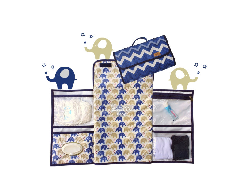 O trocador portátil possui quatro compartimentos amplos para acomodar as fraldas, pomada, pacote de lenços umedecidos e roupinha. Quando fechado, vira uma bolsa para facilitar o transporte.
